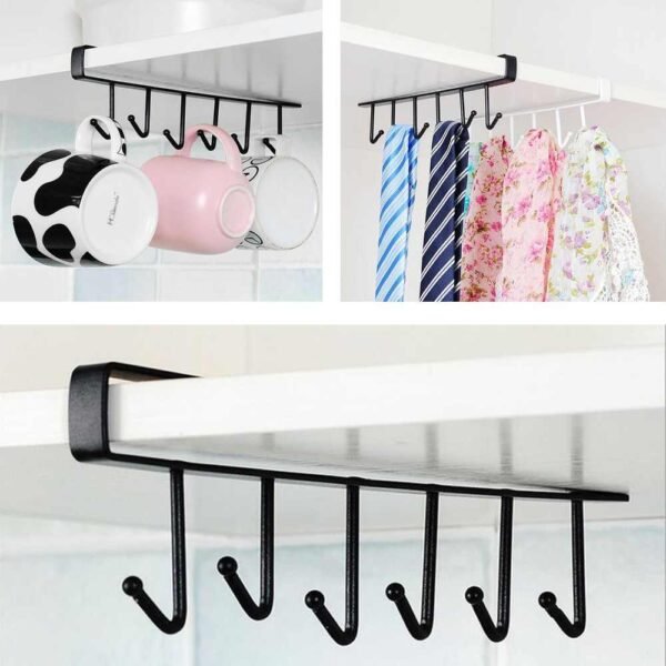 6 Hooks Cup Holder Cabinet Shelf Kitchen Storage Rack