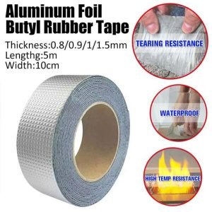 Features: – Butyl Seal Tape, Roof Repair Tape Rubber Seal Tape Covered with Aluminium Foil. – Waterproof, sealed and chemically resistant, UV resistant (sunshine). – Very easy to use, just peel off the released film and then apply this butyl sealant tape to anywhere needed. – It has weather resistance, aging resistance and water