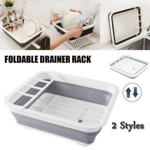 Foldable dish rack Color: Grey+White Material: TPR+PP Opening Size: 12.7cm x 31.75cm x 36.83cm 100% brand new and high quality. It is retractable and foldable, saving space. It is easy to move and take, and utilized widely. Can be used as dish rack for household needs and camping clean-up. The contoured ergonomic handles and light weight allow the tub stand over the sink and hold itself, and also make pick-up and carrying easy, Stain resistance for easy and convenient cleaning. highly durable, odors resistant, stain resistant to preserve hygiene, not easily deformed. Separate area for silverware, utensils, and other gadgets for more organized drying. Flexible material allows dish rack to collapse flat to save space and make the most of your kitchen countertop, Can be used with a drying mat or drain board. A must have foldable washing bowl and container which is perfect and portable for indoor and outdoor needs such as traveling, caravanning, camping, hiking, BBQ.