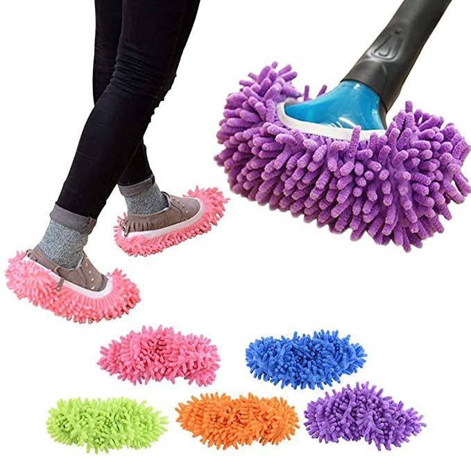 ) micro fabric 2) CONVENIENT& MULTI-PURPOSE: Just wearing this mop slippers makes the whole house beautiful. Can also be set in mop as a mop head, used to wipe floor, wipe glass, or washing the car, etc. 3) HIGH PROPERTY of absorbing water and dust moping with microfiber. 4) FREE SIZE: Both for men and women, adults and kids. Can use it with barefoot or as a shoes cover. 5) COMFORTABLE: Soft and non-slip mop slippers, giving best experience in household cleaning. 6) PERFECT FOR dust, dirt, and pet hair, this dust mop slippers is a great time saver. simply wash and reuse over and over.