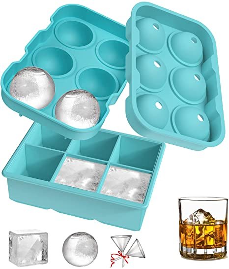 Classic shape, no deformation-We create three classic shapes to meet your needs, large cube shape: 14.24 x 4.13 cm (internal ice grid size: 3.81 x 3.81 cm), 6 ice cubes; large spherical shape: 15.24 x 4.13 cm (ice cube: 5.08 cm in diameter), 6 ice balls; honeycomb shape: 19.3 x 2.0 cm, 37 cores. This silicone ice cube tray is super flexible and durable, and will not deform even if it is pulled strongly.
